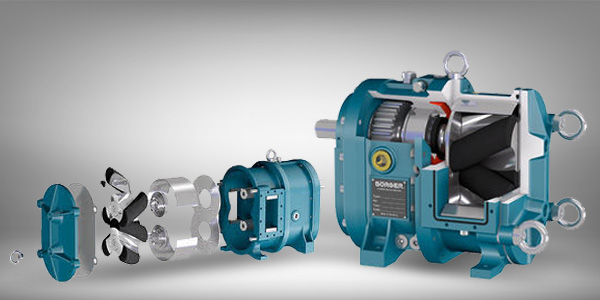 Ytterligare en stor fördel med Börger lobrotorpumpar är den genomtänkta konstruktionen som innebär enklare service och underhåll. Det går snabbt och är enkelt att byta alla slitdelar i pumpen utan att demontera pumpen från rörsystemet.